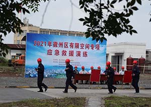 5月14日上午10點,“2021年徽州區有限空間專項應急救援演練”在我公司進行,市應急管理局副局長吳永杰、副區長范成林以及區應急管理局、經濟開發區、區衛健委、區消防大隊等部門負責人到場指導,園區23家化工企業50余人參加了觀摩。