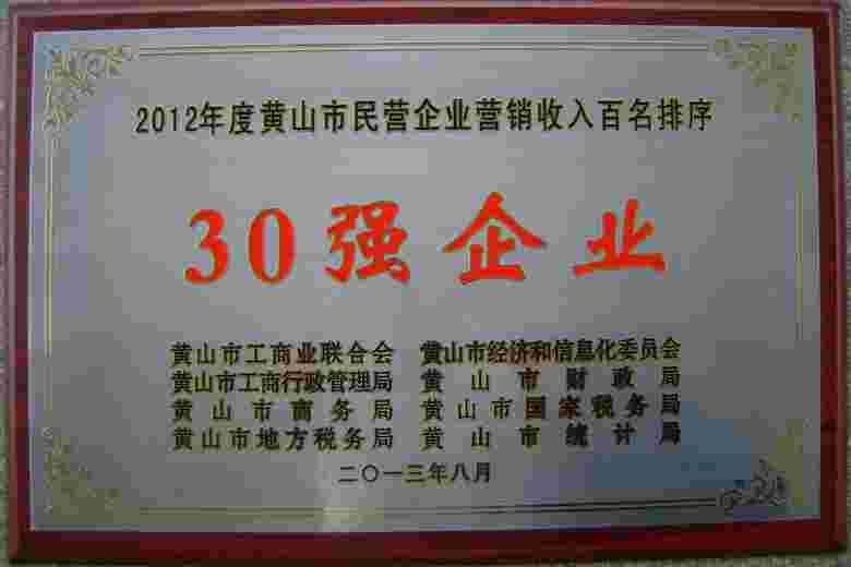 2016年黃山市民營企業營銷收入30強