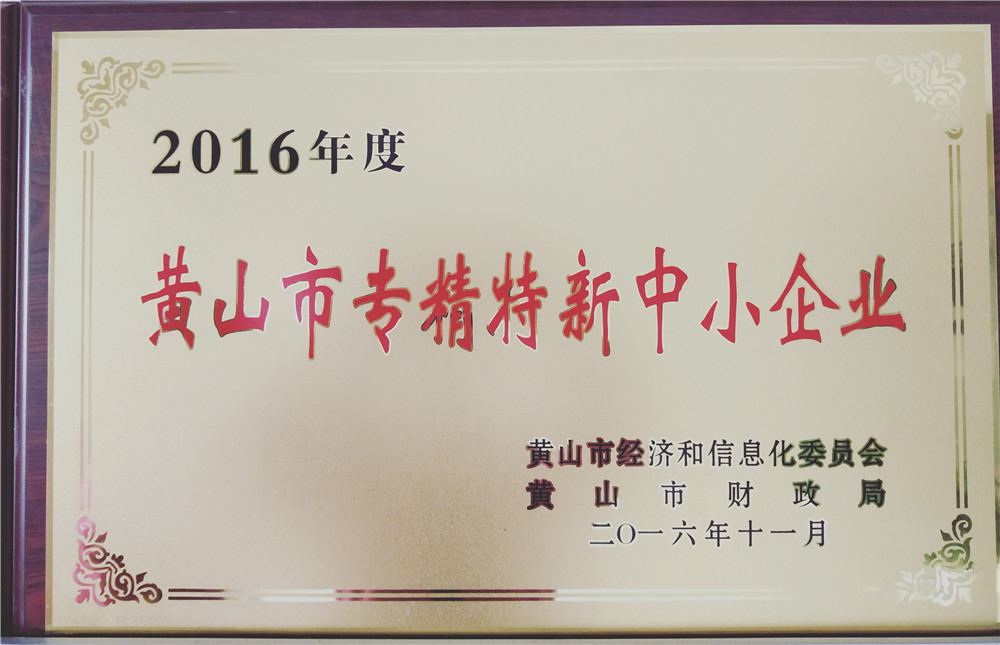 2016年度黃山市專精特新中小企業